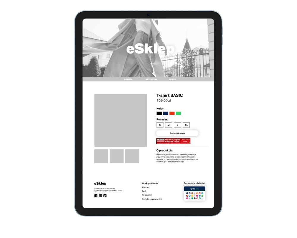 Skutecznym sposobem na przekonanie klientów, aby skorzystali z oferty sklepu, jest także stworzenie podstrony poświęconej wyłącznie dostępnym w sklepie metodom płatności. Wyjaśnij na czym polega każda dostępna u Ciebie metoda płatności i kto jest operatorem płatności, a w miejscu, gdzie przybliżasz raty Pekao, użyj specjalnego baneru.