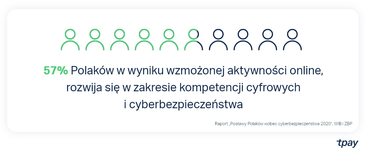 badaniu ZBP “Postawy Polaków wobec cyberbezpieczeństwa 2020” ponad połowa Polaków potwierdziła, że w wyniku wzmożonej aktywności online, rozwija się w zakresie kompetencji cyfrowych i cyberbezpieczeństwa.