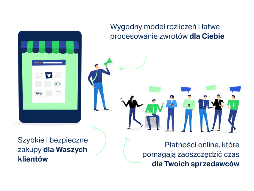 Twoi sprzedawcy zyskają możliwość przyjmowania bezpiecznych płatności dla marketplace, proste procedury zwrotu i intuicyjny panel transakcyjny, a klienci - możliwość szybkiego uregulowania należności dzięki nowoczesnej bramce płatniczej.